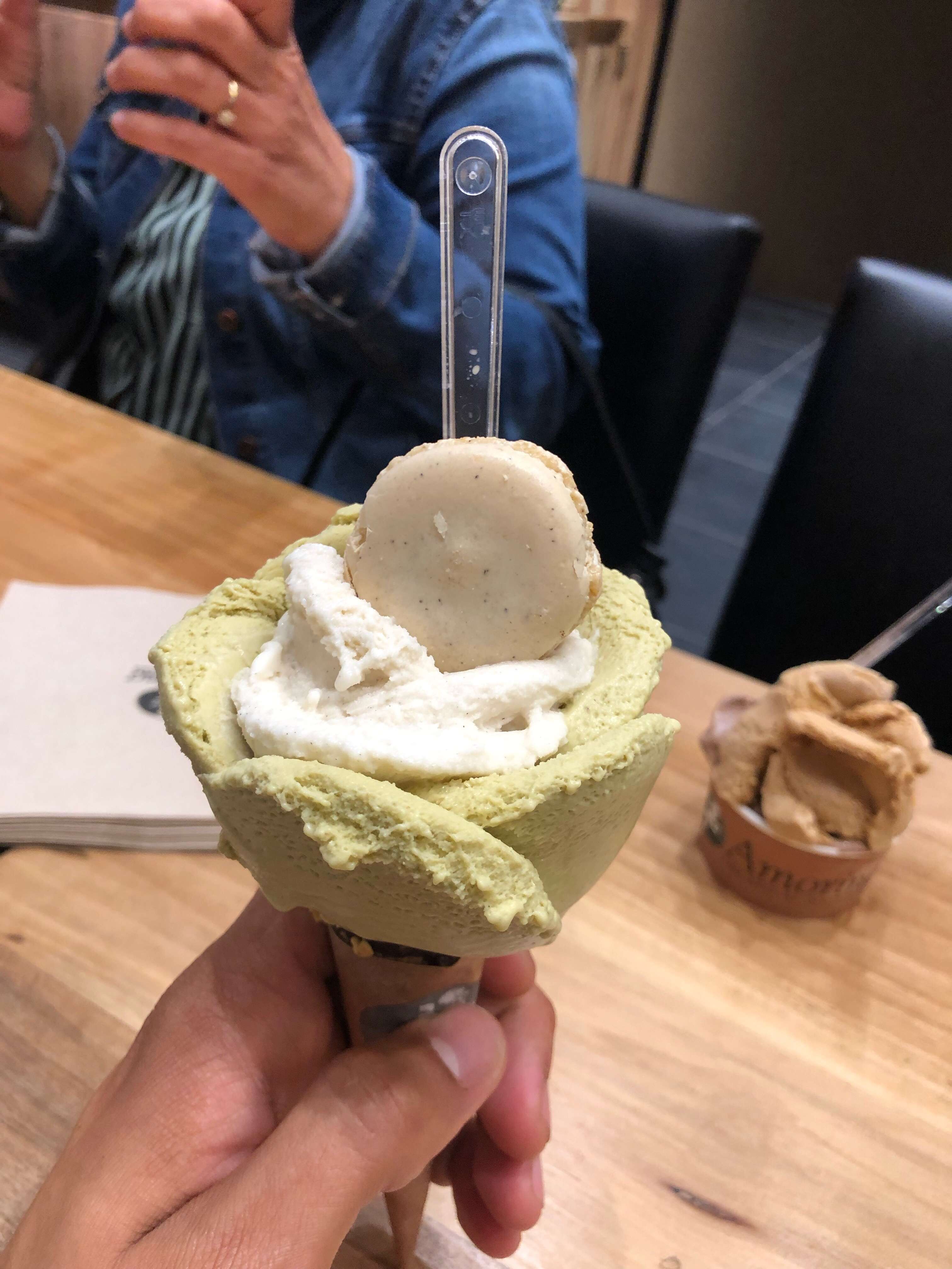 É sempre bom comer os gelados na amorino num dia de calor, os seus gelados são bons com muita variedade. E as formas que fazem nos cones são...