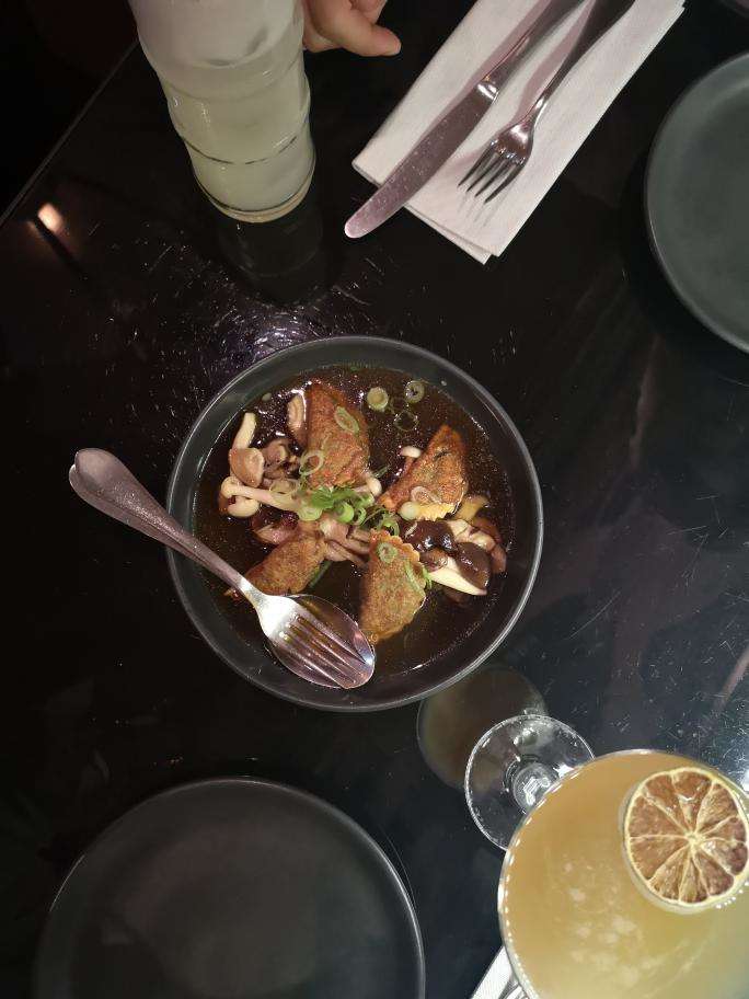 Para entradas pedimos dumplings de shitake e frango frito que estavam muito muito...