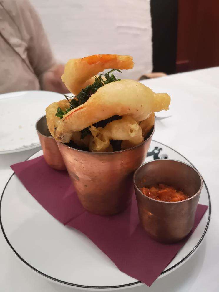 De entrada escolhemos a tempura de bacalhau, gambas e lulas, ótima pela...